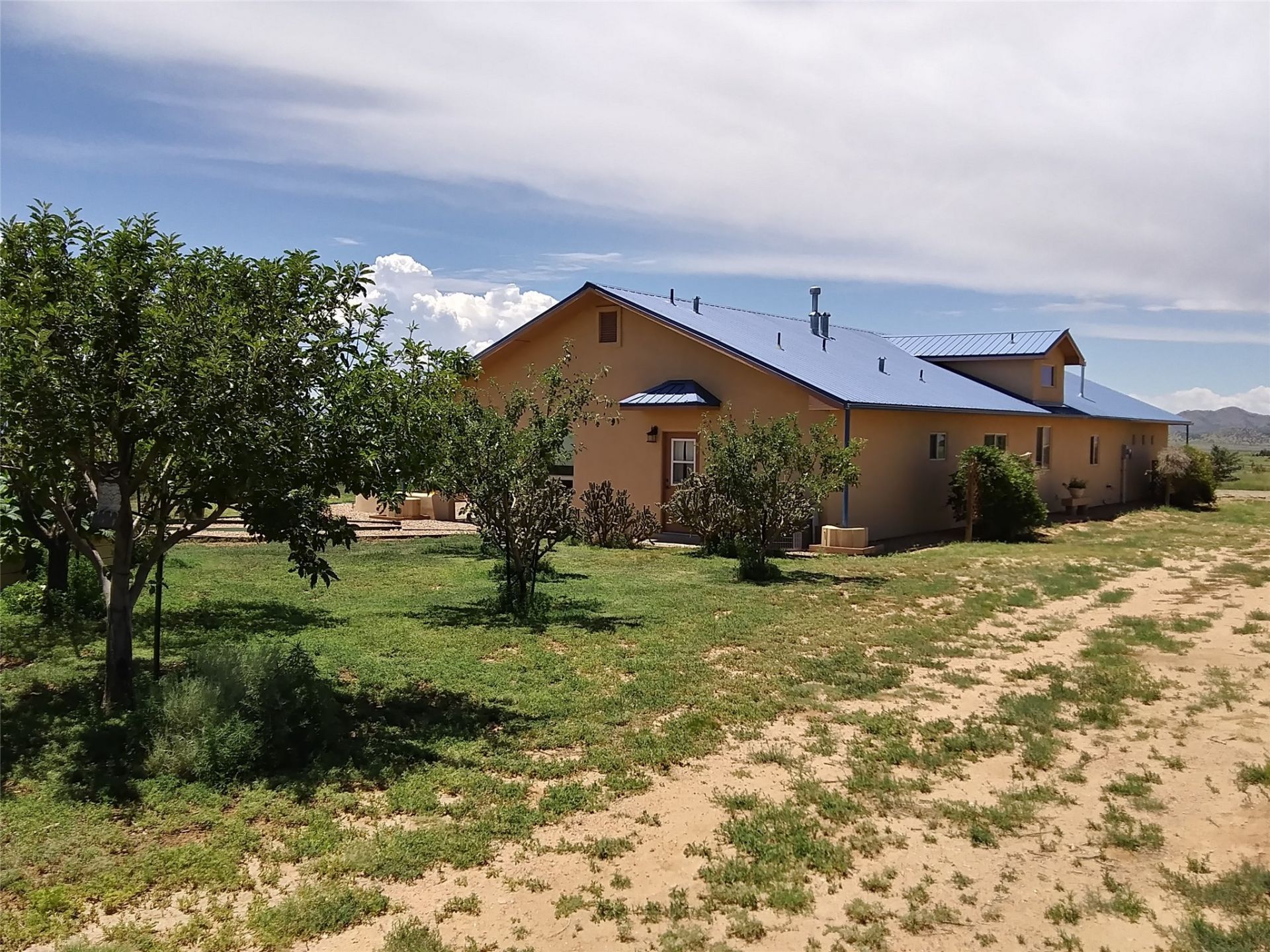 Set on over 15.8 acres in Rancho San Marcos, this Northern New Mexican-style home offers wide-open space, big views, and true equestrian functionality approximately 30 minutes from the Santa Fe Plaza. The 3-bedroom, 2-bath layout includes a flexible bonus room ideal for an office, studio, or additional living space, with an open-concept kitchen, dining, and living area designed to take in the surrounding high desert landscape. Large windows frame mountain and sunset views, while the covered patio provides a quiet place to enjoy the natural setting and expansive skies. The primary suite features a walk-in closet and a spacious bath with a soaking tub. For horse enthusiasts, the property is well-equipped with a 3-stall steel barn, tack and hay storage, workshop space, and a large corral. Direct access to community riding trails, along with a 50-acre horse park, round pen, and arena, adds to the appeal. Additional features include a 2-car garage with overhead storage, private well, septic, and a durable metal roof. Located within a gated community known for its privacy and scenic surroundings. Property is being offered in as-is condition and presents an opportunity for a buyer to update and personalize while capturing the value of the land, setting, and equestrian infrastructure. Property is sold in As-Is condition.
