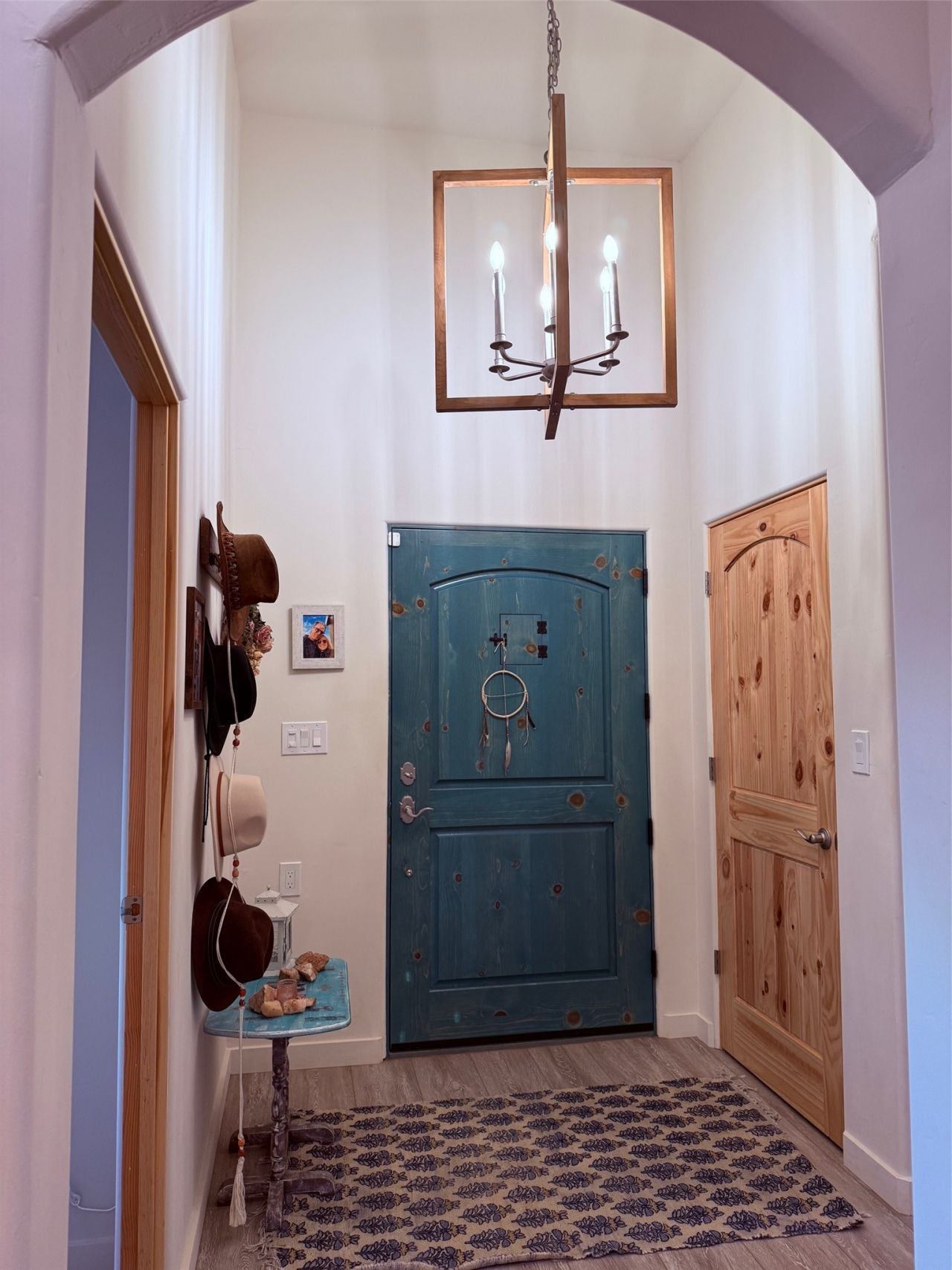 Completed in 2023 and gracefully set on nearly three pristine acres in The Ridges, this exceptional soft-contemporary residence captures the essence of refined New Mexico living. Designed to embrace expansive views, privacy, and serenity, the property offers a rare combination of architectural sophistication and natural beauty ? with ample space to accommodate a future guest house or casita. The home's light-filled interior is defined by soaring 12-foot ceilings in the great room, creating a dramatic yet welcoming atmosphere. An open-concept design enhances both everyday living and elegant entertaining, while three well-appointed bedrooms (or two bedrooms plus an office) and two luxurious full baths provide comfort and style in equal measure. The spacious and inviting primary suite serves as a private retreat, featuring a charming sitting area with French doors that open to the garden patio and framed expansive views. The en suite bath is a true showpiece, highlighted by a luxurious slipper tub illuminated by an overhanging crystal chandelier and dramatically appointed with dual rustic log cabin vanities, blending refined elegance with warm Southwestern character. The chef's kitchen serves as a striking focal point, outfitted with premium Café appliances, including a six-burner gas cooktop and oven, Café refrigerator, Bosch dishwasher, and exquisite level 5 granite countertops. Clean lines, quality craftsmanship, and thoughtful finishes throughout contribute to the home's bright, airy ambiance. Seamless indoor-outdoor living unfolds beneath covered portals ideal for year-round enjoyment. Landscaped garden beds await curated plantings, and a beautifully positioned fountain serves as a serene focal point, adding both movement and calming ambiance to the expansive back patio. Modern conveniences include an electric vehicle charging hookup, a comprehensive whole-house alarm system, water filtration, a bidet in the primary bathroom, and a gas fireplace. Located within The Ridges subdivision, known for its quiet surroundings, breathtaking vistas, and reasonable HOA guidelines, this nearly new residence represents a rare opportunity to enjoy privacy, luxury, and timeless Southwestern beauty. Select furnishings are available for purchase separately, offering the possibility of a refined, turnkey acquisition.
