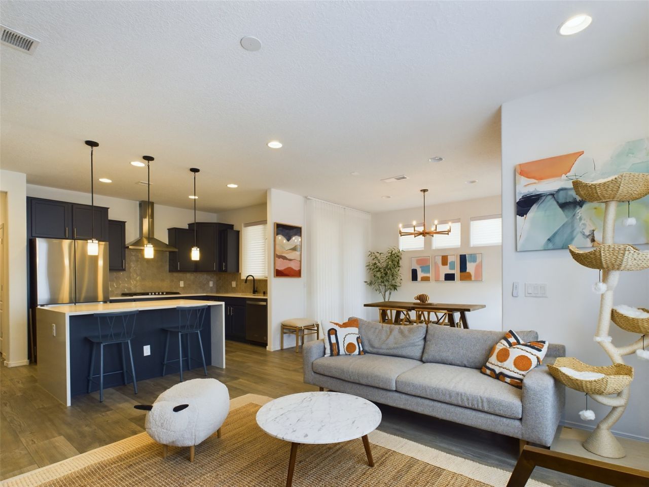 Discover comfort and style in this spacious two-story Pulte-built townhome featuring 4 bedrooms and 3.5 bathrooms, thoughtfully designed for modern living. The main-level primary suite offers privacy and convenience, complete with an en-suite bathroom and direct access to a charming courtyard just off the dining area. The open-concept layout seamlessly connects the living and dining spaces to a beautifully appointed kitchen?perfect for both everyday living and entertaining. A convenient half bath on the main level adds functionality for guests. Upstairs, you'll find additional bedrooms along with a versatile second living area, a private en-suite bedroom, and access to a balcony view deck?ideal for relaxing and enjoying Santa Fe's scenery. Additional highlights include an attached 2-car garage, high-efficiency forced air heating and air conditioning, and access to a well-maintained HOA community featuring a neighborhood park and several walking trails. This home offers the perfect blend of space, comfort, and convenience?don't miss it!