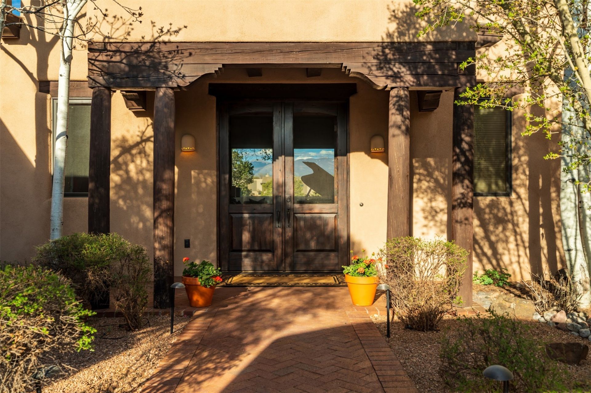 In the high desert of Sata Fe, where light and landscape shape daily life, a quietly exceptional residence offers a refined interpretation of modern Southwestern living - one defined not by excess, but by ease. Set on 1.65 acres within the prestigious community of Las Campanas, where light and landscape shape daily life, a timeless Pueblo-style residence, crafted by esteemed Master Builder Tierra Concepts, embodies a rare level of intention in which architecture, landscape, and lifestyle exist in complete harmony. Spanning approximately 3,730 square feet, the home offers three bedrooms and 3.5 baths, each space thoughtfully designed to balance privacy with connection. From the moment you enter, the absence of steps creates a sense of ease and fluidity?an environment equally suited for elegant entertaining or quiet daily living. Expansive windows frame uninterrupted views of the Sangre de Cristo Mountains, bringing a sense of stillness and natural grandeur into every room. Light shifts throughout the day, casting a quiet rhythm across the interiors and reinforcing the home's deep connection to its surroundings. At the heart of the residence, a professionally designed media and theatre room offers a refined retreat?ideal for immersive evenings or private escape. The primary suite is its own sanctuary. Just beyond, a secluded portal reveals a built-in spa, thoughtfully positioned to capture the surrounding beauty while offering complete privacy?an experience that feels both indulgent and restorative. Multiple intimate outdoor living spaces invite you to follow the sun, the shade, or the stars, each one offering a distinct perspective of the landscape and the sweeping mountain views beyond. This is a home defined not by excess, but by precision?where every detail reflects the craftsmanship of Tierra Concepts and a commitment to enduring quality. A rare offering in Las Campanas?where luxury is not simply seen, but quietly experienced.